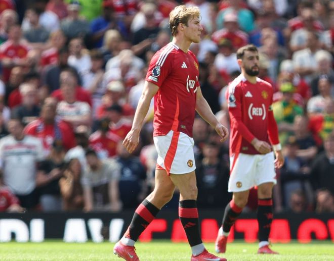 本场比赛曼联排出3421阵型。霍伊伦顶在最前面。梅努和芒特在他身后。阿马德-迪亚洛、乌加特、布鲁诺-费尔南德斯和哈里-阿马斯4中场联袂出击。马兹拉维、约罗和卢克-肖组成3后卫。巴因迪尔担任首发门将。加纳乔、卡塞米罗和马奎尔坐在替补席待命。